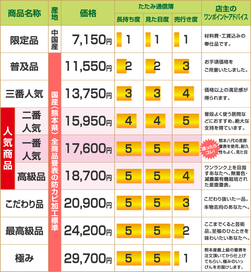 ■へり付きからの表替えも可能です。ヘリなし畳には目積表・和紙表・琉球表がございます。